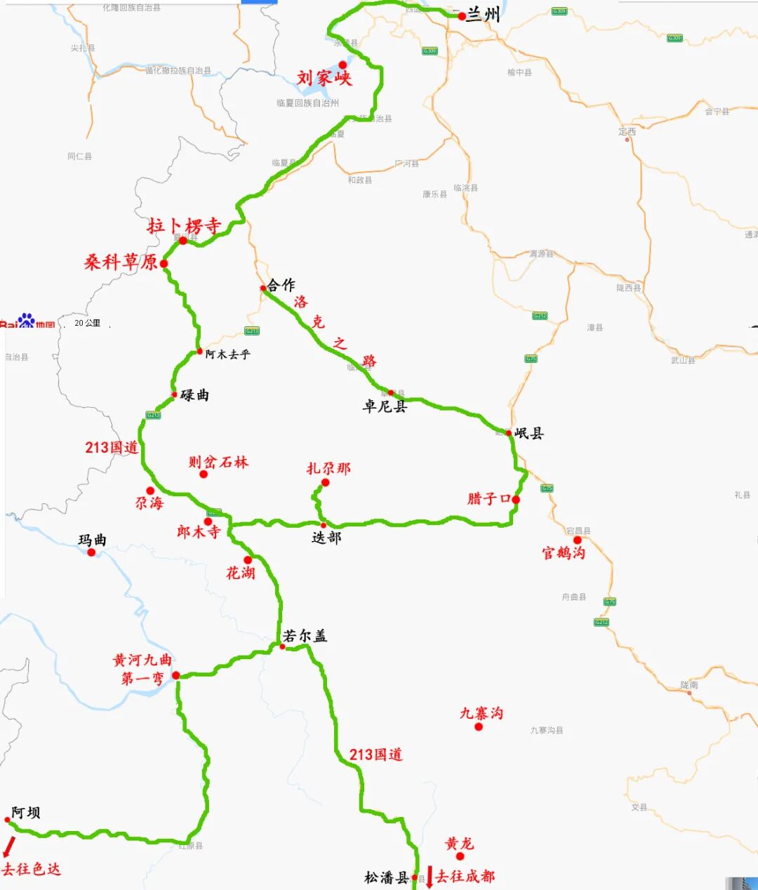 本文以兰州起步为例,展开行程,下图为自制的甘南行路线规划图: