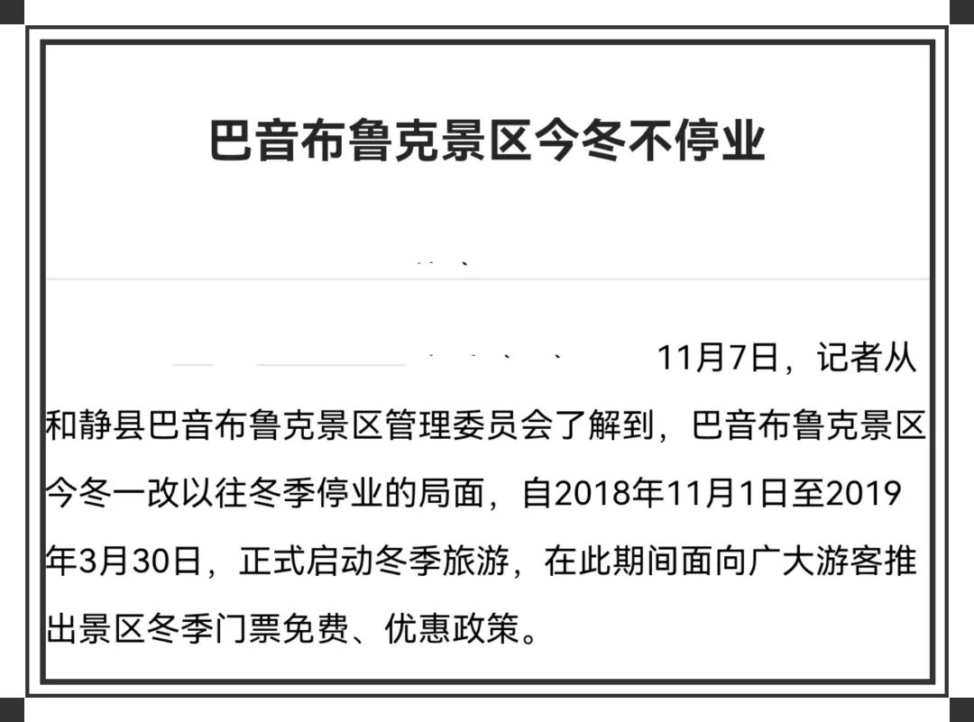 例如从库车市到天山神秘大峡谷段,从独山子区到独山子大峡谷段,都是全年开放的,只是可能会受天气等因素影响偶然封闭,而如今的那拉提甚至都有高速公路直达,也是全年都可以去,另外,巴音布鲁克、巩乃斯、唐布拉等主要景区都或多或少有一些冬季旅游优惠政策。