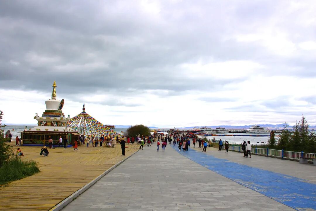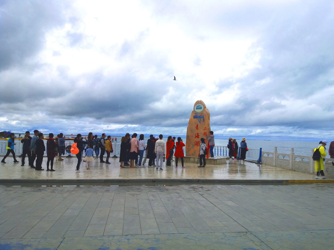 一群游客,排队在“青海湖·二郎剑“的石碑前留影,只是满足一下”到此一游“的心理罢了。说实话,这个景点很让我失望,风景几无亮点,天气不好自然有影响。但即便是晴朗的天气,在我看来,偌大的青海湖,比二郎剑风景好的地方也比比皆是。