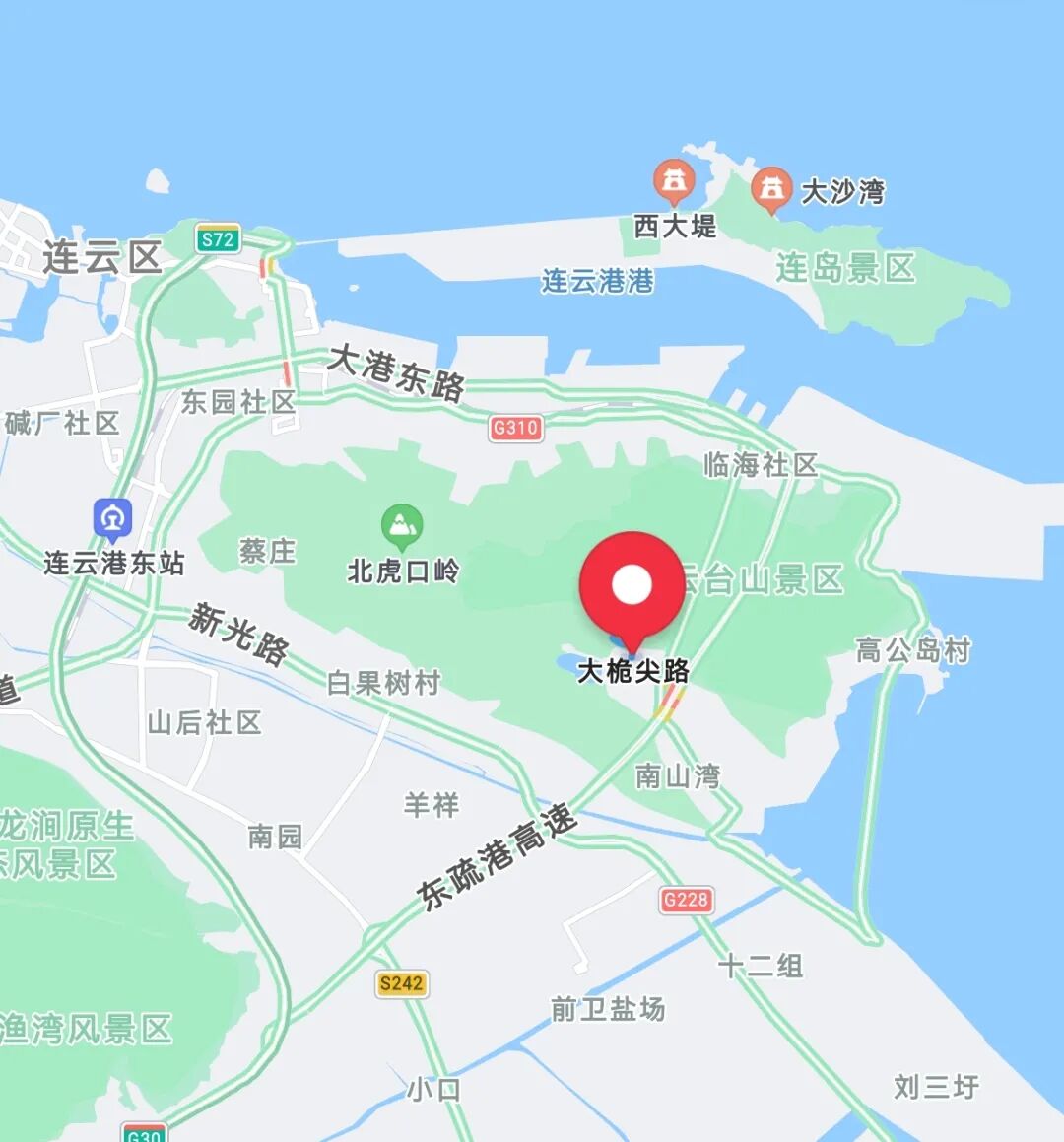 自驾路线:高德、百度和腾讯地图导航搜索大桅尖路都是只有一小段,走完之后继续沿海上云台山盘山路绕行上、下山,到连云港老街为止。