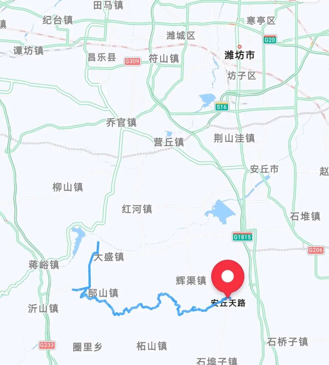 自驾路线:可用高德地图直接搜索“安丘天路”导航前往,百度搜索不出来,腾讯地图可搜索到该公路入口。