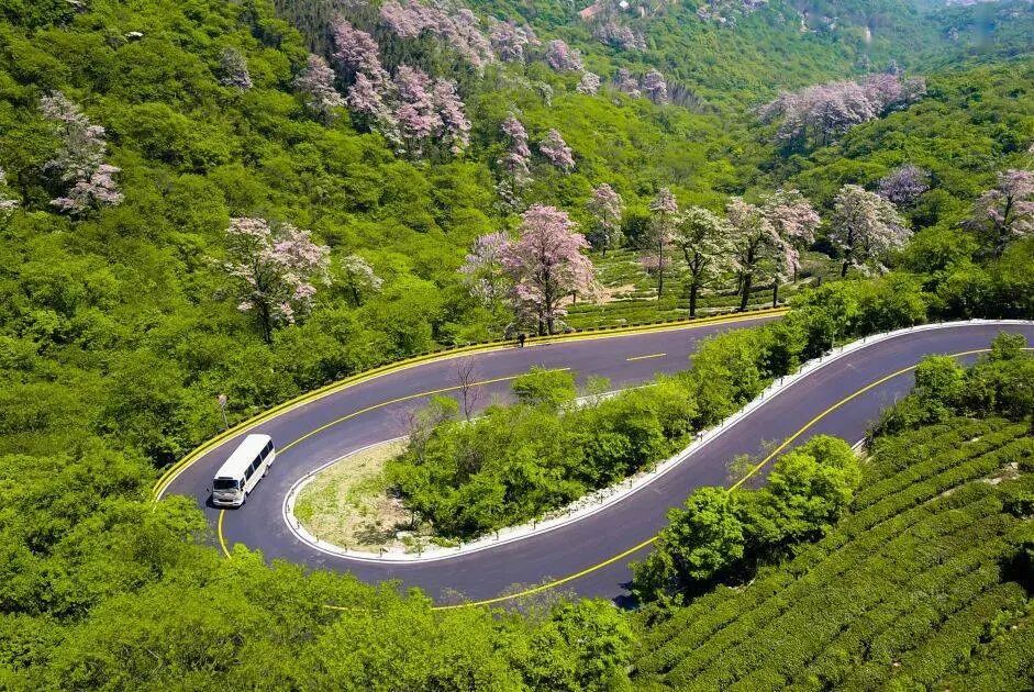 该路全长18.7公里,途径4个村庄,蜿蜒36道弯,沿线森林植被丰富,云雾茶园众多,有山有水、有花有茶,还有漫山红叶的枫树湾、法相庄严的法起寺、禅意盎然的悟道庵、匹练悬空的船山飞瀑、海天一色的二桅尖等。
