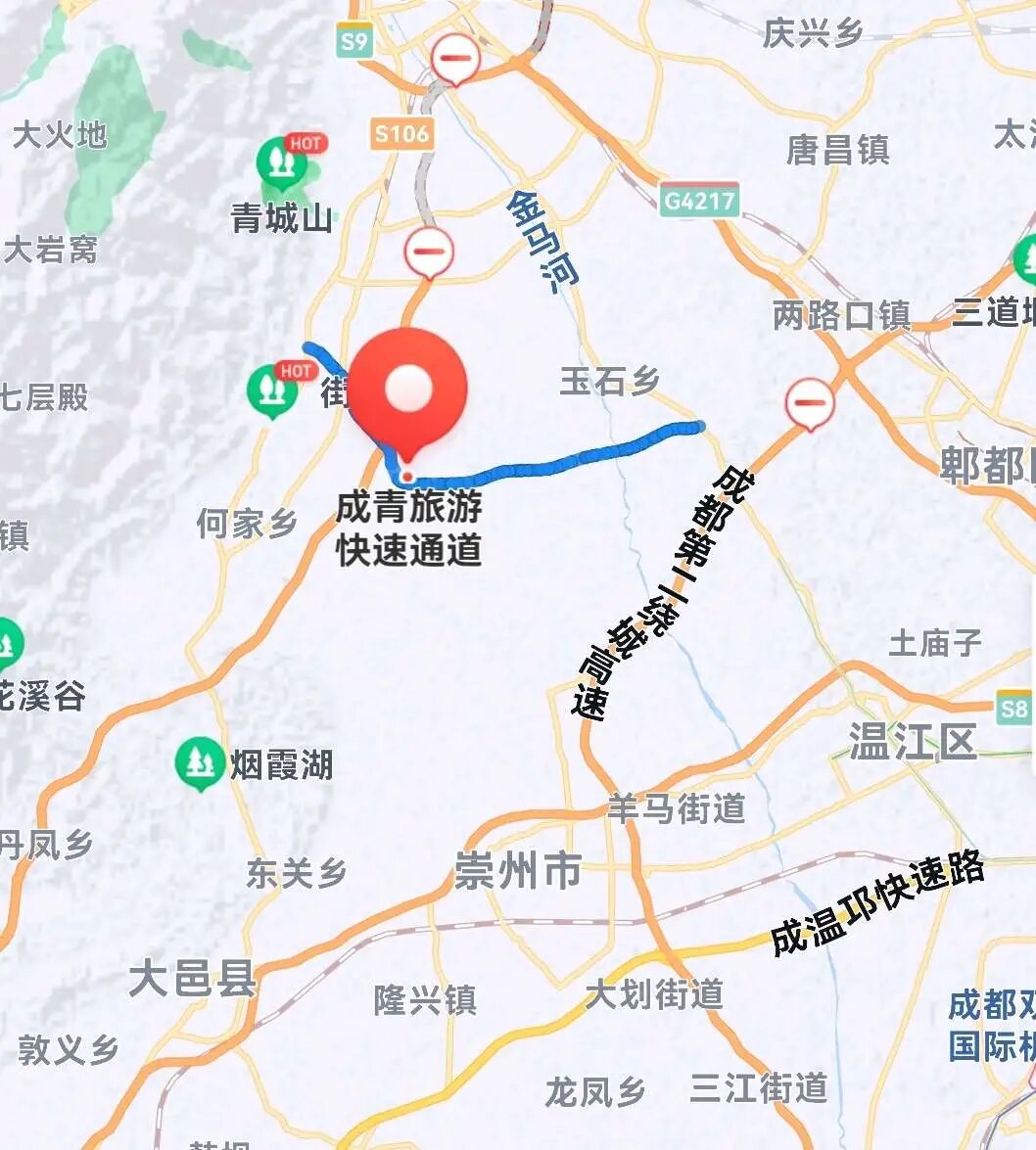 自驾路线:百度或腾讯地图搜索成青旅游快速通道,沿路行驶,高德地图搜索成青路,选择都江堰市段。