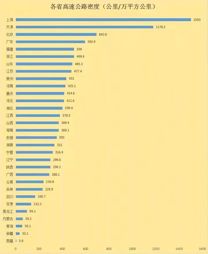从密度上看,贵州已经稳居中西部第一,全国第九,排在贵州之前的仅有北上津以及东部5个沿海经济发达省份,另外,贵州还是我国第六个实现县县通高速的省级行政单位,仅次于北上津和江苏福建。