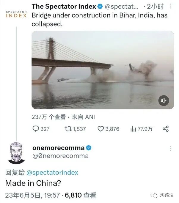 但是据说这座桥已经建8年了,已经是第二次倒塌了。印度的造桥技术有待提高啊,如果印度放下面子,找中国帮忙,我想中国的基建公司肯定是愿意帮忙的。