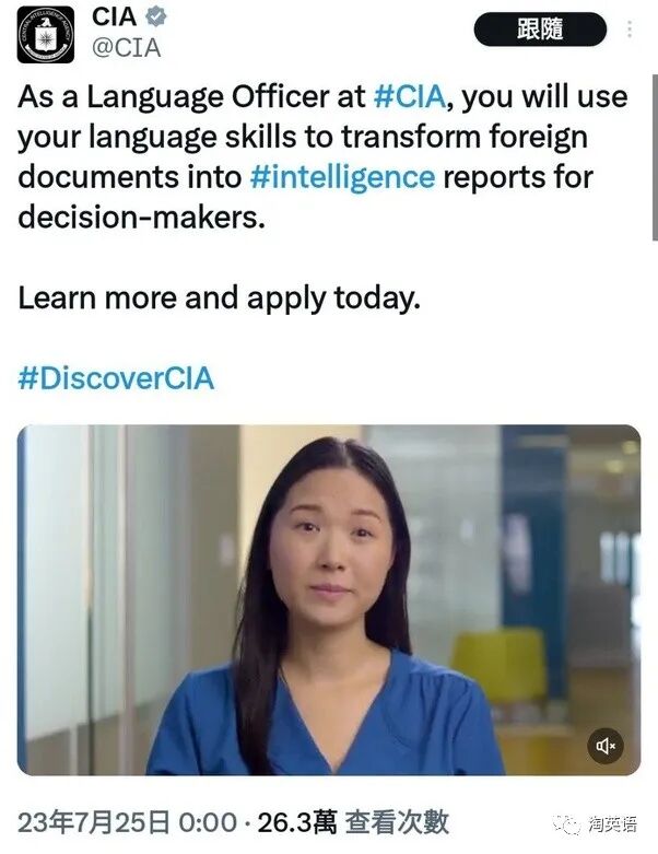 这是一个CIA美国情报招聘翻译的帖子,用你的语言技能翻译文档形成报告给决策者。
