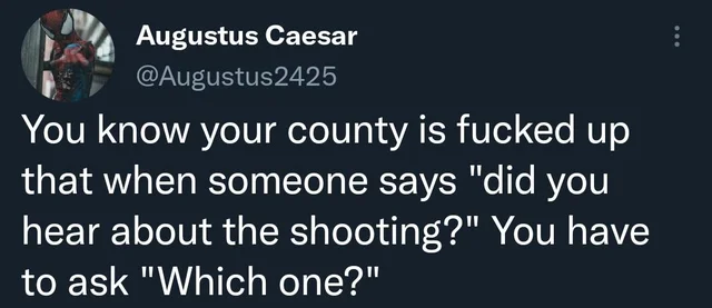 当有人问“听说过那场枪击案吗?”你还得问是哪一场的时候,你就知道这个国家完蛋了