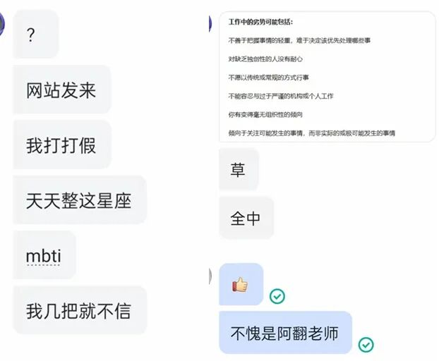 不过对我而言最惊悚的,可能还是如果真按MBTI测试的结果看,那么我似乎明白为什么阿翻老师平时这么喜欢找我说话了。