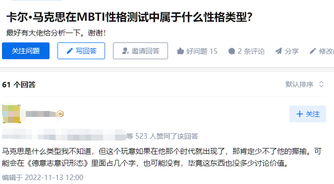 而被莫名其妙地被划进了这个框架的还不只有现在的活跃人物,从马斯克到马克思,只要是个名人,即便已经入土了上百年,也有人想把他挖出来当个人格坐标参照物。