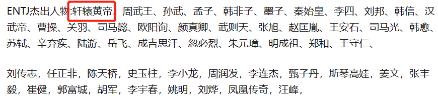 在这座人格金字塔中,ENTJ、ESTJ等人格坐落在鄙视链上层,被认为是最有概率在现实中取得成功的人格,像比尔盖茨、李小龙,乃至于秦始皇和轩辕黄帝便是其中的代表人物。