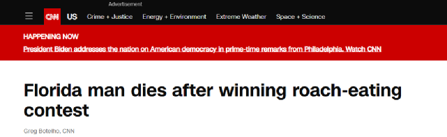 在外网,你常常能看见以“Florida Man”(佛罗里达男子)为开头的新闻,后面衔接着常人无法理解的行为。