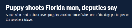 比如“一位男子试图枪杀小狗,结果反被狗子给崩了一枪。”