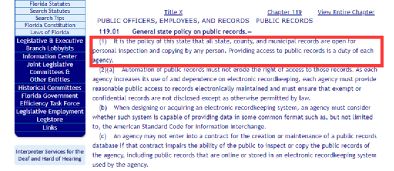 这要归功于上世纪末佛罗里达州颁布的阳光法案(Sunshine Laws)。该法案规定,任何公民都可以向州政府请求公开社会文件——不过这东西最早被认为是纯纯的鸡肋。哪个脑子正常的人,会去翻那些冗长又无聊的政府会议纪要?