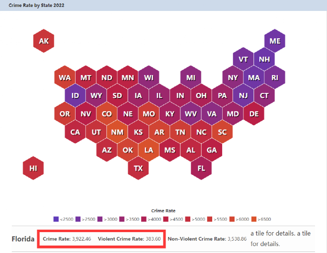 这并不是指佛州的犯罪正逐年激增。恰恰相反,根据近年的报告,佛罗里达州的犯罪率和排名一直在稳步下降。最近几年,佛罗里达的暴力犯罪率已经降到了0.38%上下,在国内位居十名开外,相比于上世纪那冠绝全美的犯罪率,这已经算是个天大的进步。