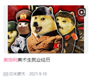 在有着浓重俄式土嗨风味的音乐伴奏下,贴着一撇小胡子的小狗cheems,经历了从奥地利美术学院落榜,到监狱里奋发图强进化成doge,最后在地下室饮弹自尽的魔幻一生。魔性的曲子,晃动的小动物,精妙的融梗,闪回的历史事件等要素瞬间吸引了大批网友,迄今已有3kw播放量。