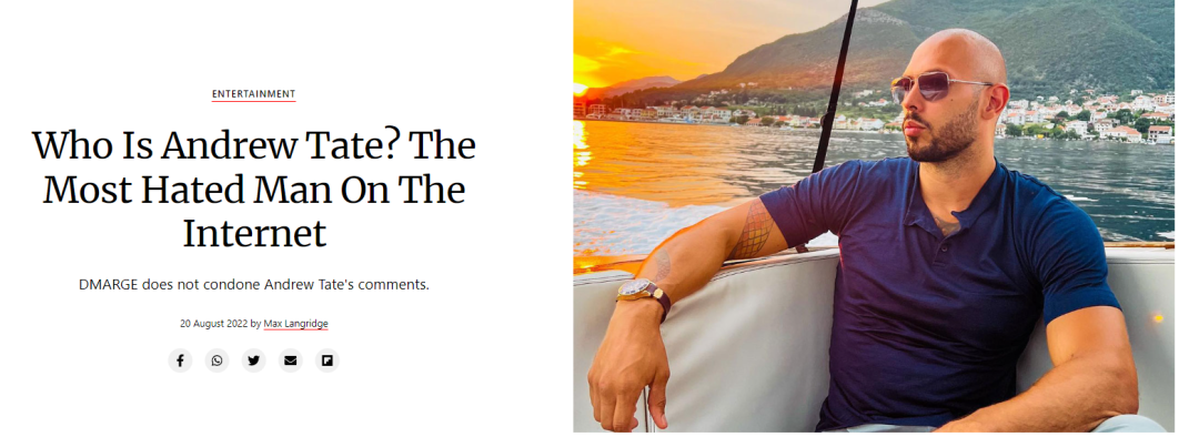 和当年的川普一样,Andrew Tate最近也被互联网巨头联手封杀了。