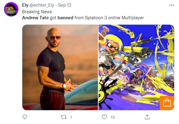 最近发售的《斯普拉遁3》以新颖的玩法和可爱的画风得到了许多玩家的青睐,唯独Andrew Tate不能享受这份快乐。