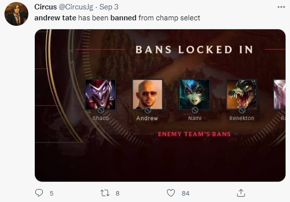 这个近期在社交媒体上燥极一时的风云人物,在8月底被全部主流平台“赶尽杀绝”,并且它们给出的理由都很模糊:仇恨性极强的厌女行为和违反平台相关规范。