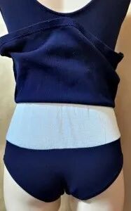 在旧式死库水的内测腹部,额外多缝制了一块布,这块布与泳裤的部分缝在一起,使得学生在游泳时,泳衣内积存的水可以从这里排出去,很大程度上解决了棉质的种种缺点。
