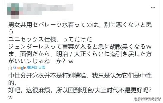 正如文章开头所说,无性别死库水能获得支持,原因在于原本的死库水存在种种问题。比如裸露度较高,很多学生穿起来会很不好意思。要知道,日本绝大多数学校的游泳课都是男女一起上的,让身处青春期的学生在异性面前暴露大面积肌肤,对于男生来讲或许还好,但是女孩子心里难免会有所抵触,因此不愿意上游泳课的女孩子大有人在。