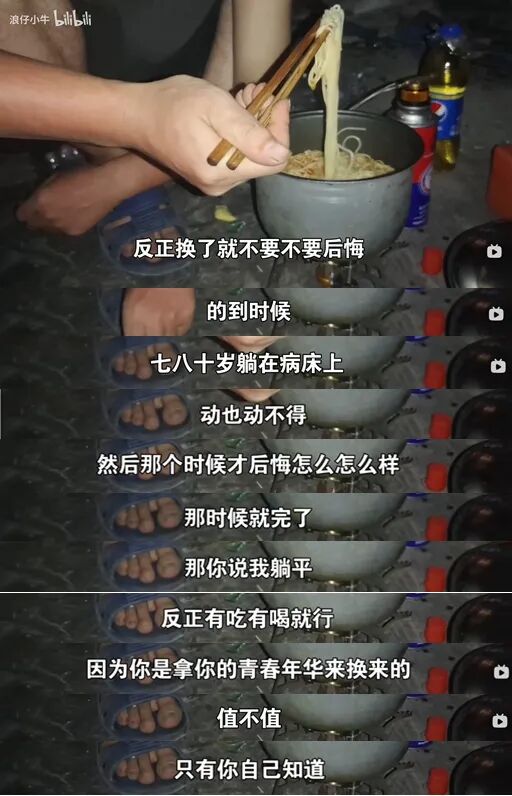 在牛少视频的评论区里,有人一针见血的指出了他的生活状态:手脚不懒,但心懒。他愿意熬上一宿开宝箱(翻垃圾桶),赚取为数不多的生活费;在做饭的时候不厌其烦,认认真真完成每一道工序。却不愿行动起来,摆脱流浪的泥潭,认真规划自己的生活。面对类似的评论,牛少从来只是笑笑,不做任何回应,而在上个月,他终于跳出了舒适圈,做出了一个可能会永久改变自己生活状态的决定——回家。