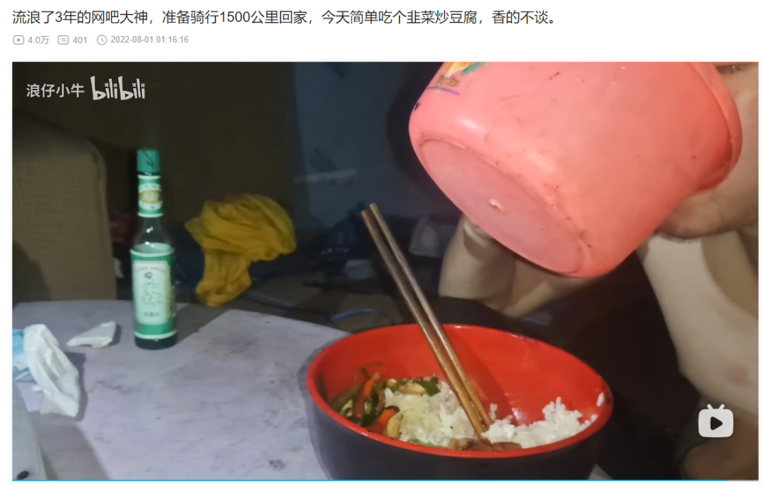 B站UP主“浪仔小牛”已经流浪了三年,由于换了手机和号码,很久前他就孑然一身,和亲人完全断联。
