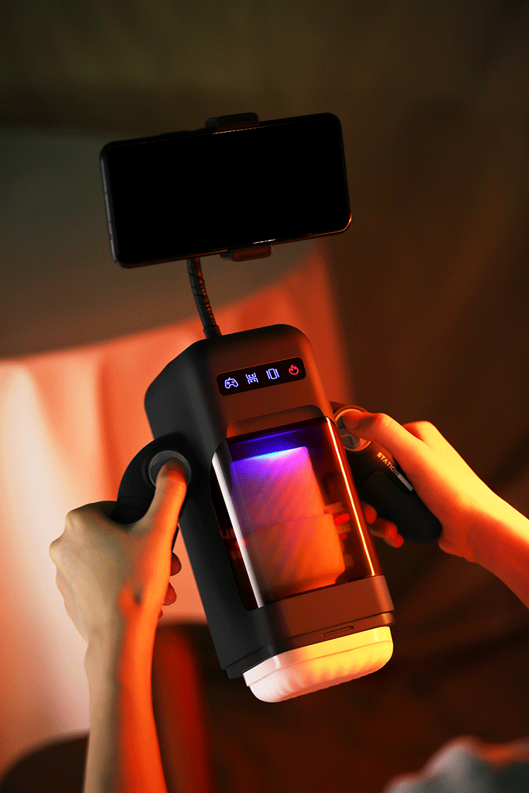 对很多人来说,使用飞机杯最大的障碍就是握持太不方便了,功能越复杂、伸缩频率越强劲的杯子,往往体积越大。经常是用一个手把持不住,两个手又仿佛怀中按着哥斯拉巨兽不停吞吐。久而久之,铁杵还没磨成针,麒麟臂倒是大成。