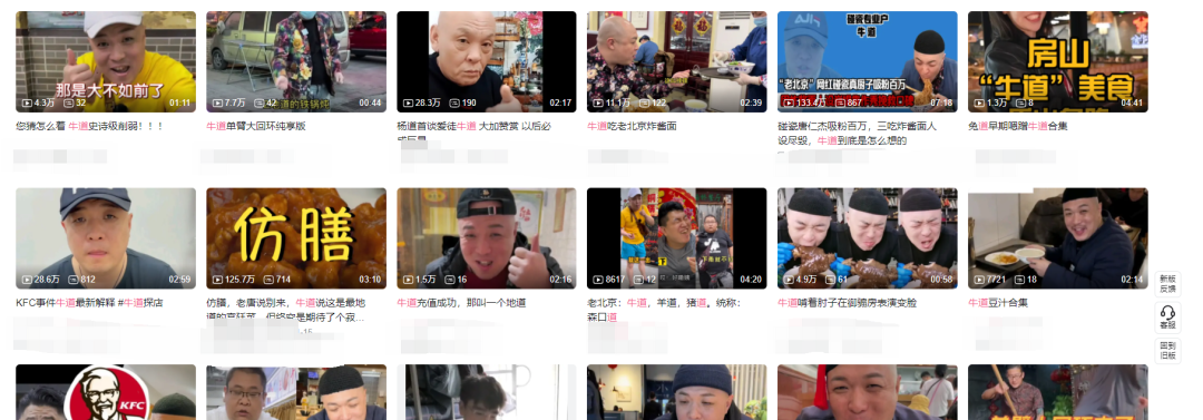如果你只是抱着纯看乐子的心态来观察这些这些“老北京探店”的话,那么会发现牛道其实已经算得上是最有“节目效果”的主播之一了。