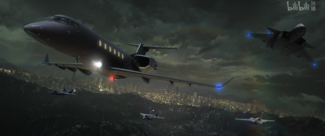 还有第二集末尾搭载着男主罗辑的飞机起飞后,立马有几架战机靠过来护航的镜头不仅帅得掉渣、尽显逼格,仔细一看还有架歼-20,不由得让我眼前一亮。