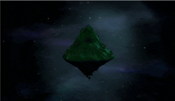 《山》的画面中央,只是一座位于星空中的简单的、缓慢旋转的山,你可以从中看见日升星落、万物生长,也可以从中看见东边日升西边雨,还可以用简单的按键去与这座山交互,弹出一首悠扬而悦耳的《天空之城》……但无论怎样,这座山最终都会迎来毁灭的结局。