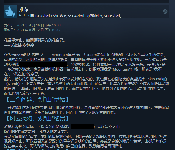 有人说,旋转鸡块让他想到了Steam“四大名著”中的《山》(《mountain》)。