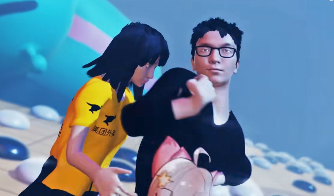 这其中最离谱的要数网友以柯洁和战鹰为主角制作的一款MMD,在《危险派对》的歌声中,二人贴面起舞,惺惺相惜的情感在劣质的建模和僵硬的动作中流转。他们的脸上没有任何表情,不知为何我却能感受到炽烈的目光和满足的微笑。