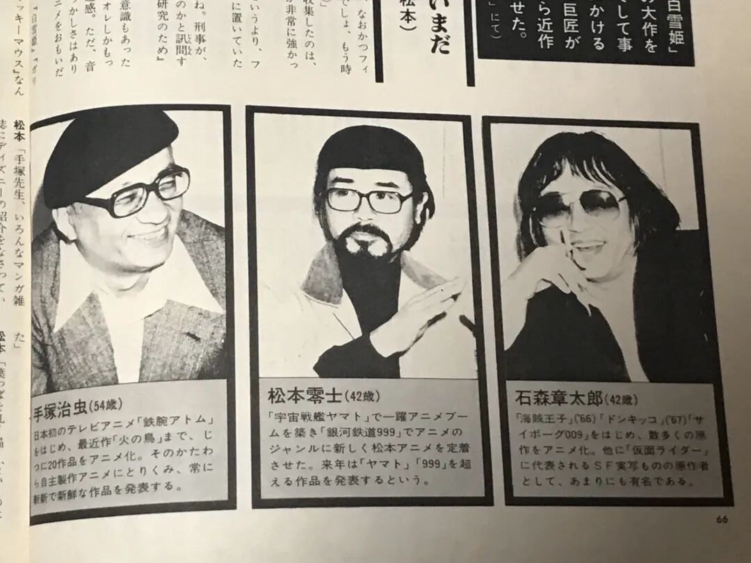 松本零士和创作《假面骑士》的石森章太郎曾是一起给手冢治虫打工的工友
