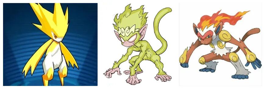 左图为赛尔号精灵雷伊;中间为村田雄介《西游记》中的孙悟空;右图为宝可梦“猛火猴”
