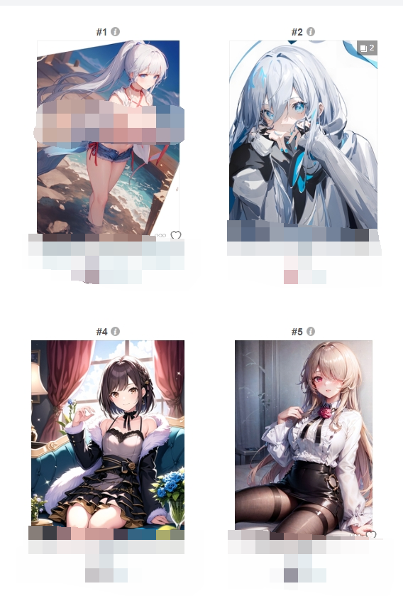 R-18和非R-18的作品,几乎都让AI们给包了个圆。这些AI生成的作品或酥胸半露或春光外泄,以挑逗的动作带来十足的暗示;有时干脆一丝不挂,以白皙的人体艺术带给予你最直观的感官冲击。