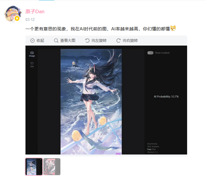 但即使是这样,也总会有许多不加标签(或者加别的标签)的AI作品混入到真人的作品当中,时不时蹦出来“恶心”你那么一下。