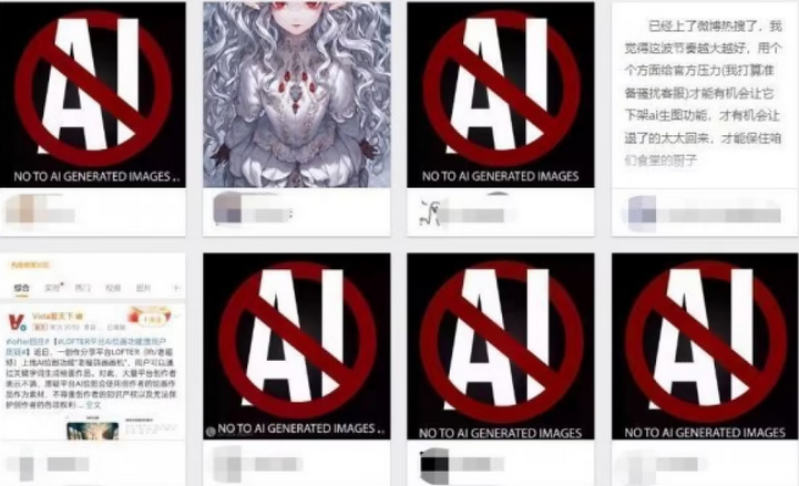 而在我国,前一阵子闹得沸沸扬扬“lofter”事件也大概如此。这个视AI如草芥的二创同人社区的用户们开始自发组织起来,抵制app内疑似剽窃用户数据的“AI生成头像”的功能。最终也迫使平台运营方下架相关功能,并作出正式的道歉。