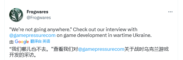 俄乌开战一周年的那天,Frogwares在推特上分享了20年老员工Svitlana的故事,这段经历或许也是无数乌克兰平民在那段混乱时期的缩影。