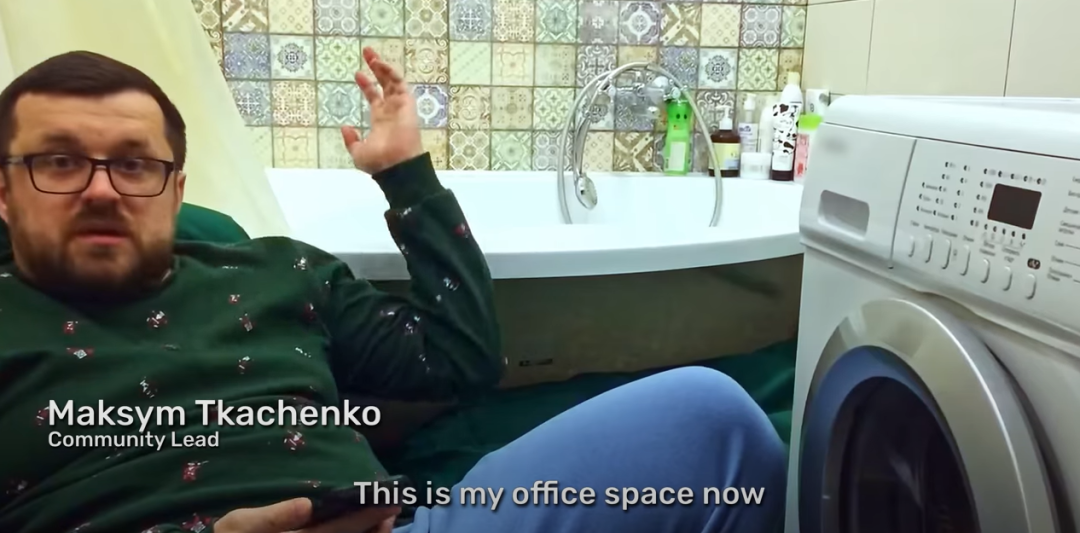 比如GSC的社区管理Maksym把自己的办公室搬进了建筑结构更加坚固的卫生间,这种做法在乌克兰很常见。