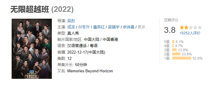 去年底,TVB联合浙江卫视推出了选秀节目《无限超越班》,并请到了成龙,尔冬升等大咖助阵。尝试再现TVB明星训练班的辉煌。但由于节目模式过于老套,剧本痕迹严重,最终在争议声中惨淡收官。