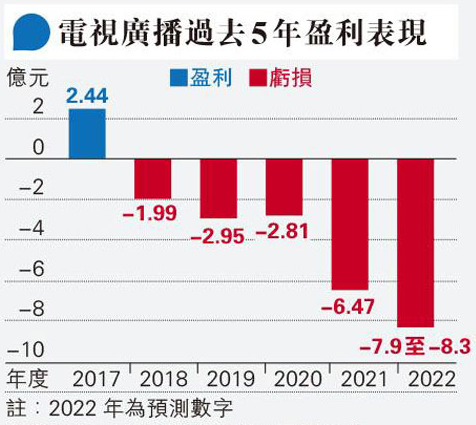 日前,TVB宣布将遣散5%的员工,目标是节省2.6亿港元的年度营运现金支出。而据TVB财报显示,2018-2021年间,TVB营收从44.77港元缩水到了28.99亿港元,连续四年亏损。2022年,这个数字继续扩大,单年预计亏损值将达到8亿元。