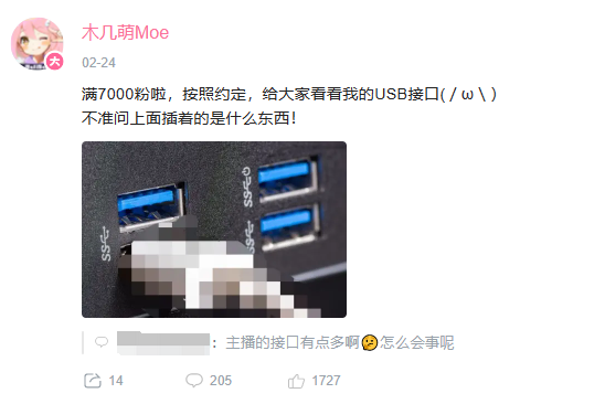 在搞颜色方面,木几萌也非常懂人心,在达成7000粉时就给大家看了USB接口。