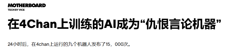 与木几萌类似,这位博主用匿名网站4chan上政治不正确版块上的数据训练出了一个语言模型,他将其称作GPT-4chan,可以完美模仿这个版块里各种充满戾气和仇恨的种族主义言论。这个AI在不到一天之内发布了15000条帖子,如同洪水一般充满了整个论坛,足足占了整个版块的十分之一。