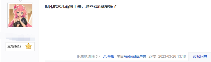 不过联系到当今的时事,木几萌被雪藏也就不奇怪了,因为对于贴吧老哥们而言,现在是战争时期,木几萌这个人形兵器身份非常敏感,只能被雪藏。