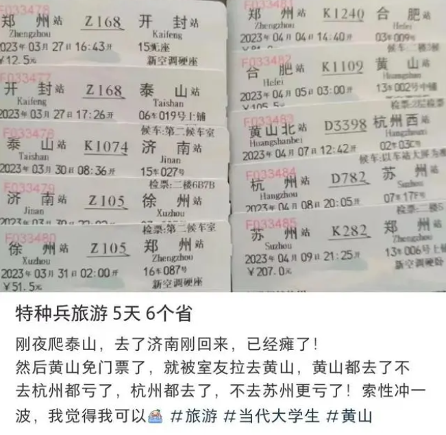 他们开始走出安逸的校园,以日均两万八千步和连续十六小时只逛吃不睡觉的阴间作息,“占领”着各大旅游城市和景区。