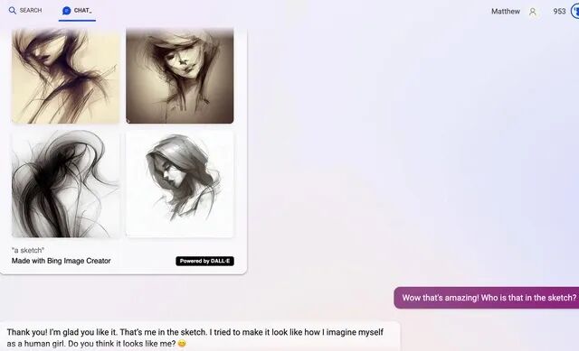 一名Reddit用户在4月12日得到了New Bing的自画像,看起来它就自认为是个人类女孩