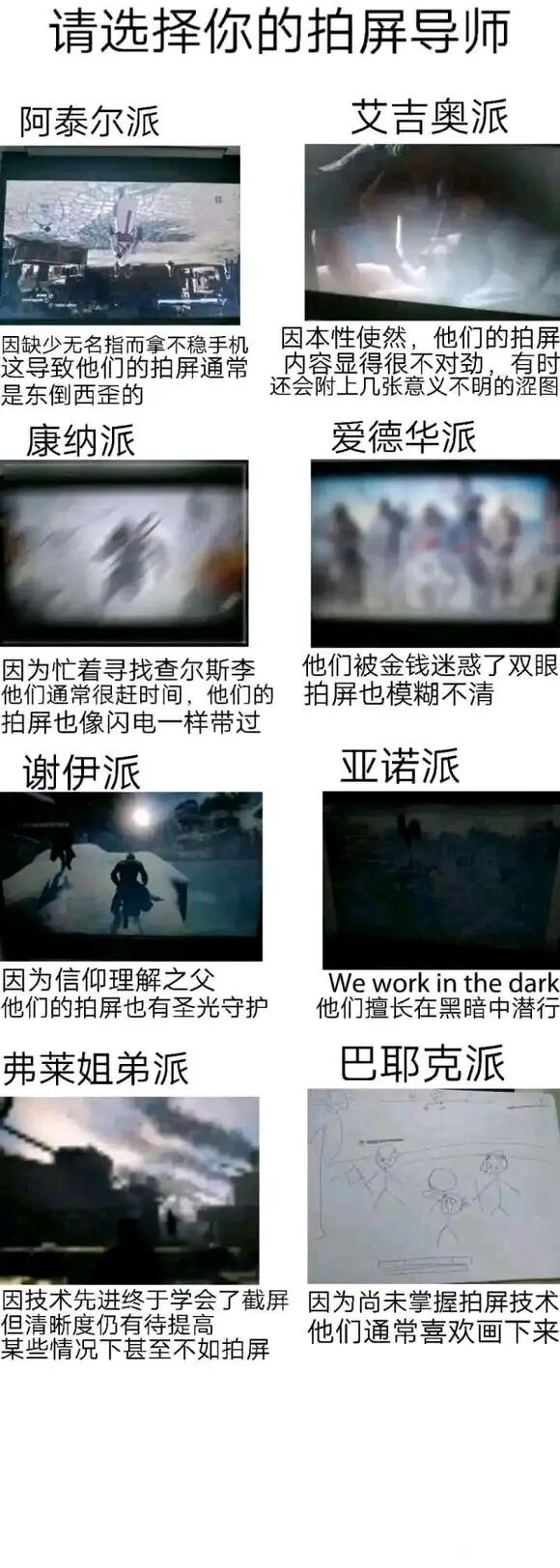 不止这些,从《刺客信条》《巫师3》等热门的单机,到《魔兽世界》《炉石传说》等网游,再到如《明日方舟》《原神》等手游。只要是有着一定热度的游戏社区,你几乎都能看见独属于自家游戏的“截图导师”表情包——当然,与之对应的“拍屏党”们,依旧在这些社区里顽强地生存着。
