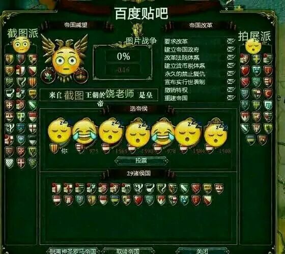 而关于“拍屏派”和“截图派”的党争,则在《欧陆风云4》中得到了更为具象化的呈现。在这里,两个党派汇聚在“截图王朝”之下,围绕截图一事展开多种政治利益博弈,只为将自己的拍屏利益最大化。