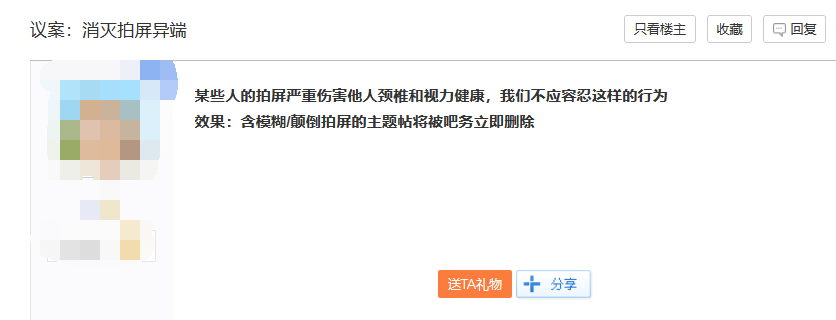 有人甚至在吧内提出了“消灭拍屏异端”,建议禁止拍屏的议案