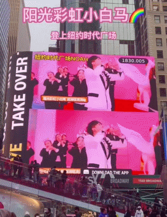 也不知道谁把《阳光彩虹小白马》带到了时代广场,可惜这块屏幕没有声音,不然场面一定很震撼。